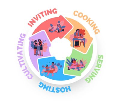 Hosts curate platforms for community engagement. It is a powerful position, deciding who is invited and what will be served. At the cookout, hosts manage this power by being as open as possible, defining borders through shifting connections. Every user of the Cookout AI is a host and has a set number of invites. This encourages users to be clear about who will bring the most value to the app, who will generate the highest quality and most healing stories and data.